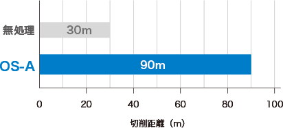 窒化チタンアルミコーティング〈TiAlN〉にくらべ、より高耐熱・高硬度で、特に鉄系材料加工のクレーター摩耗(凝着拡散摩耗)の防止に有効です。