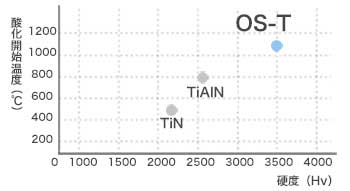 OS-Tは窒化チタン〈TiN〉にシリコンを添加した、セラミックコーティングの改良膜です。